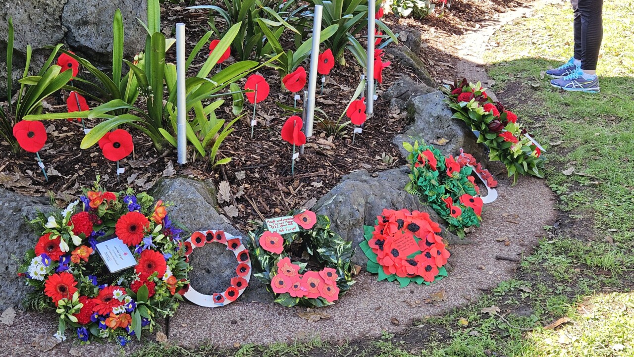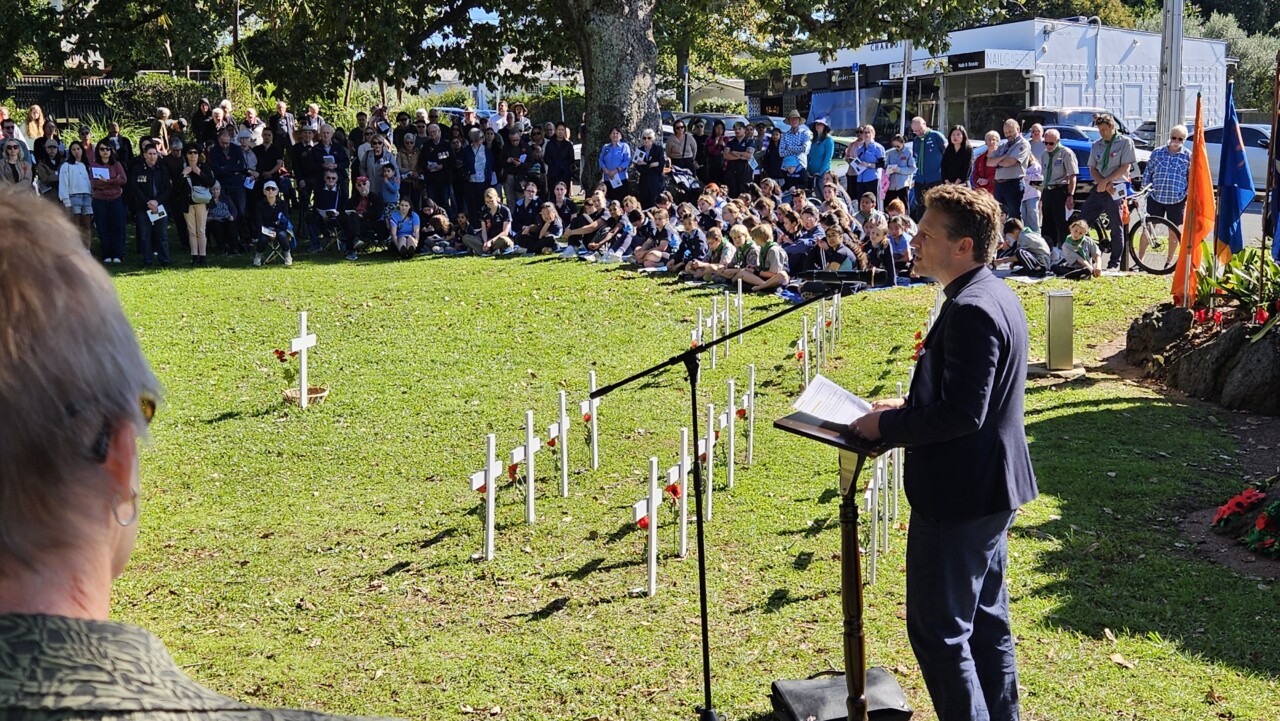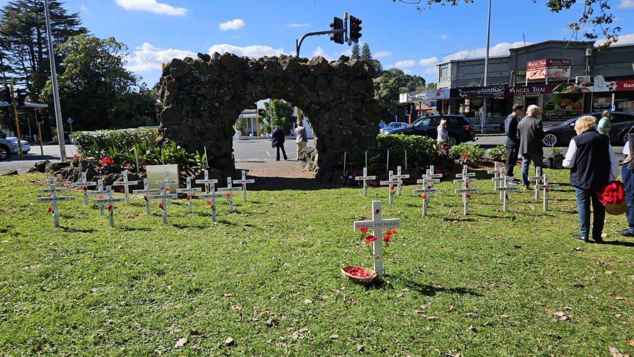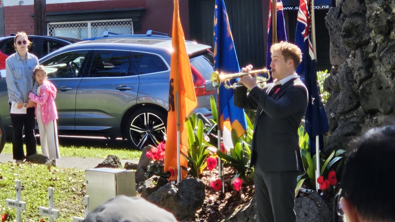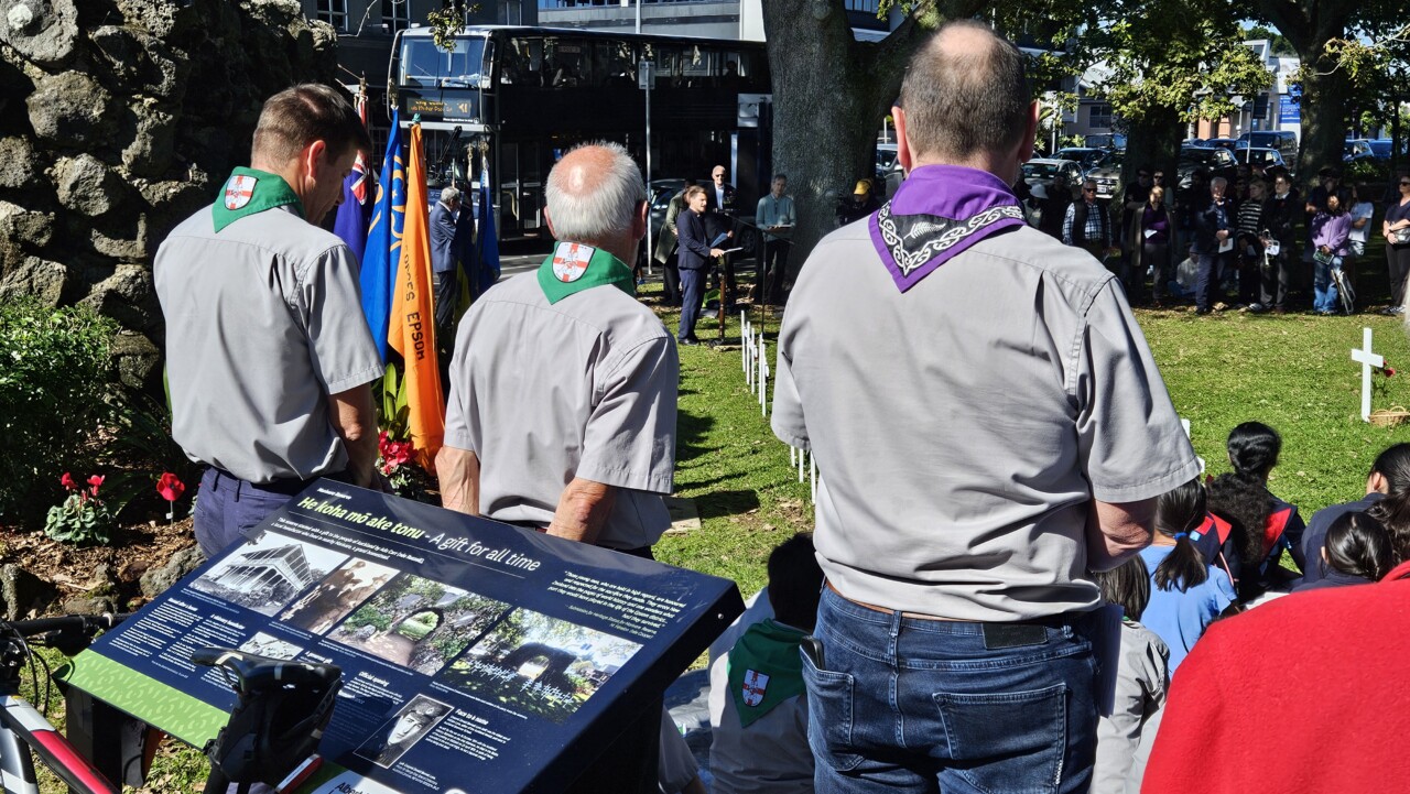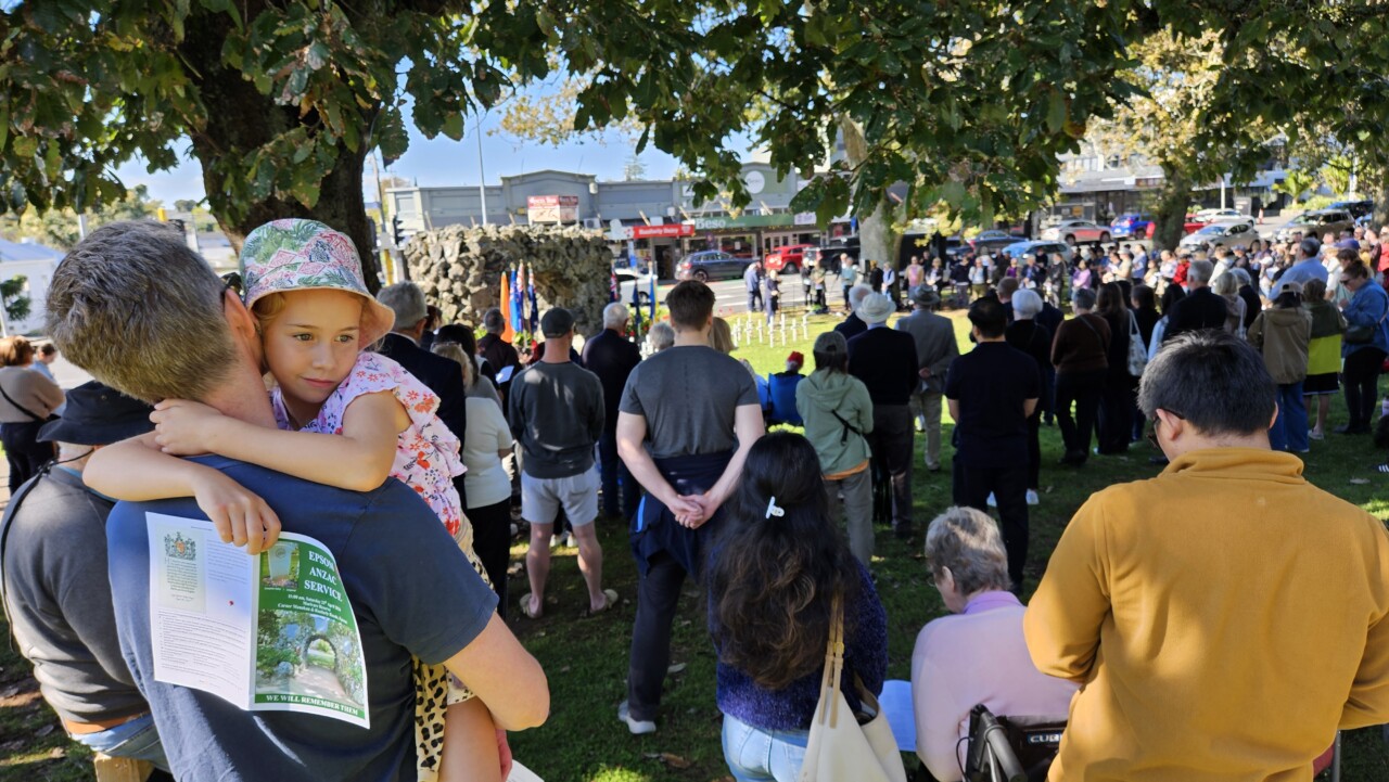 Wonderful turnout this morning on a brilliant day as a good number of the Community, both young and old, gathered for the 45-min 11am Epsom ANZAC Service. Big thanks to Gail Romano: Curator War History Auckland War Memorial Museum who told of two NZ Donald Brown’s (from Otago and Auckland) who both found themselves on the Somme on the morning of 15th Sept 1916. Thanks also the The Reverend Jeremy Woods who delivered yet another thoughtful sermon. Also to Kendyl Smith of the Albert Eden Local Board Auckland Council for leading the Laying of Wreaths. Thanks also to the Epsom District Girl Guides and the St George Scout Group for placing and retreiving the colours.